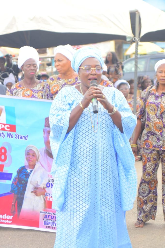 In her message of hope to the womenfolk, the Ekiti State Deputy Governor, Chief (Mrs) Monisade Afuye, praised the APC women for their loyalty to the party and the government, describing this as an impetus for the governor to deliver.