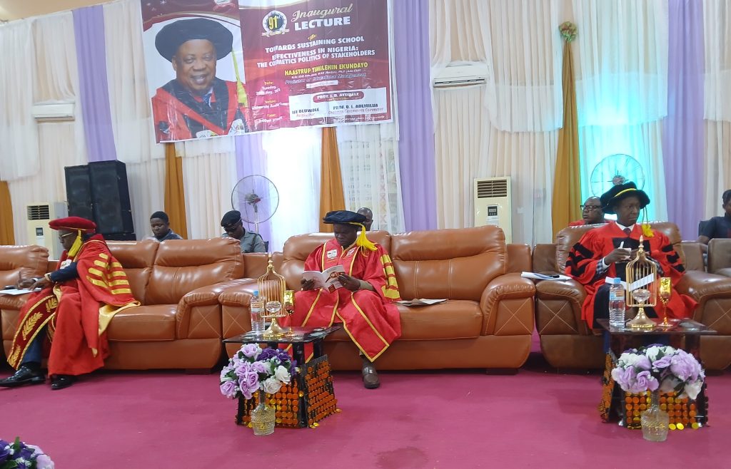 Professor Haastrup Timilehin Ekundayo, made this submission while delivering the 91st Inaugural lecture of the Ekiti State University EKSU, Ado-Ekiti, Ekiti State, on Tuesday, 20th May, 2025 at the University main auditorium with the topic; Towards Sustaining School Effectiveness In Nigeria: The Cosmetic Politics of Stakeholders.