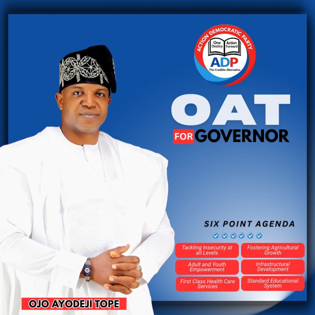 The governorship candidate of the Action Democratic Party (ADP) for the 2026 election in Ekiti State, Pastor Ojo Ayodeji Tope, popularly known as OAT, a native of Ikere -Ekiti, has unveiled a six-point agenda aimed at repositioning the state for sustainable growth, shared prosperity, and social justice.