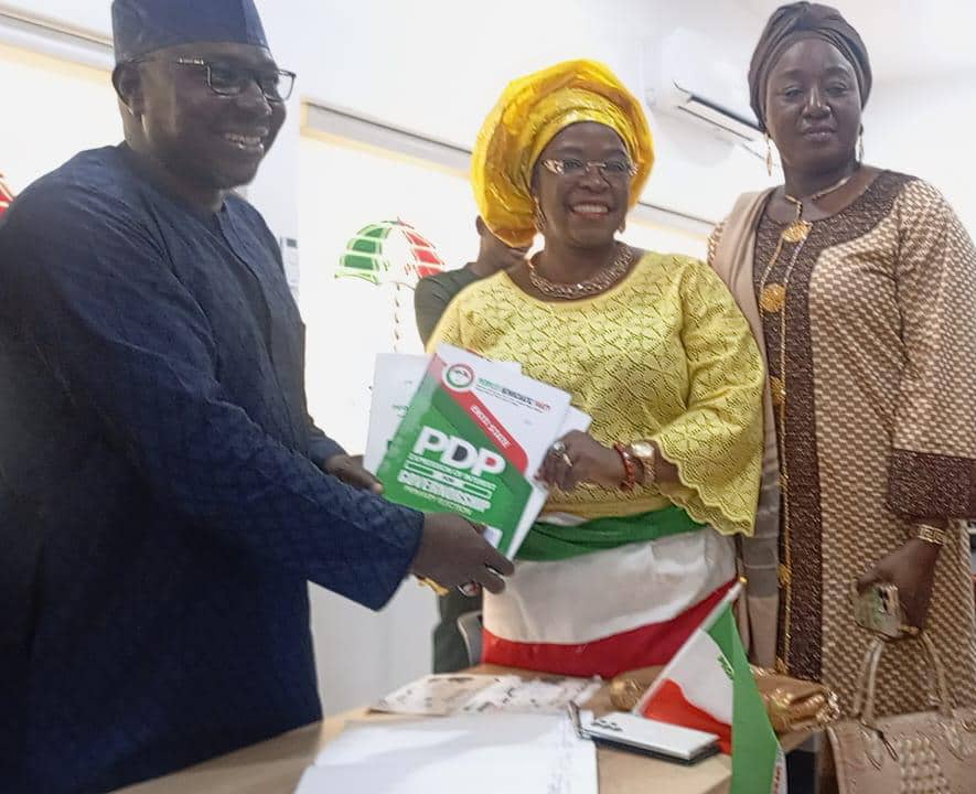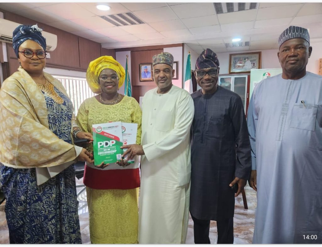 The former Commissioner for Works and Transportation in Ekiti State, Hon. Mrs. Ogun Funmilayo Theresa (OFT), has officially picked the People’s Democratic Party (PDP) Gubernatorial Expression of Interest, and Nomination Forms at the PDP National Secretariat, Abuja.