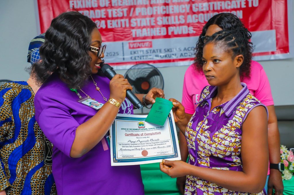 Aside the presentation of hearing aids to the beneficiaries, Proficiency and Trade Test Certificate of the Federal Ministry of Labour and Employment were also presented to 40 PWDs who last year completed six months training programme in five key trades including tailoring, shoemaking, hairdressing, ICT, and catering .