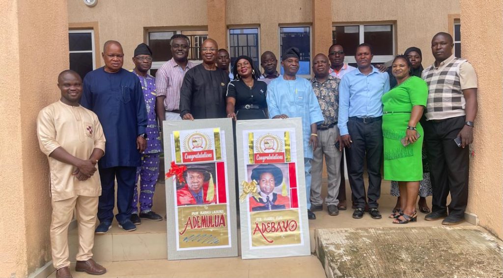 The 2001 set of Geology Department alumni of Ekiti State University, Ado Ekiti, led by their President, Fadekemi Longe, have honoured two outstanding lecturers of the Department. The lecturers were Prof. O. L Ademilua and Prof. O. F Adebayo.