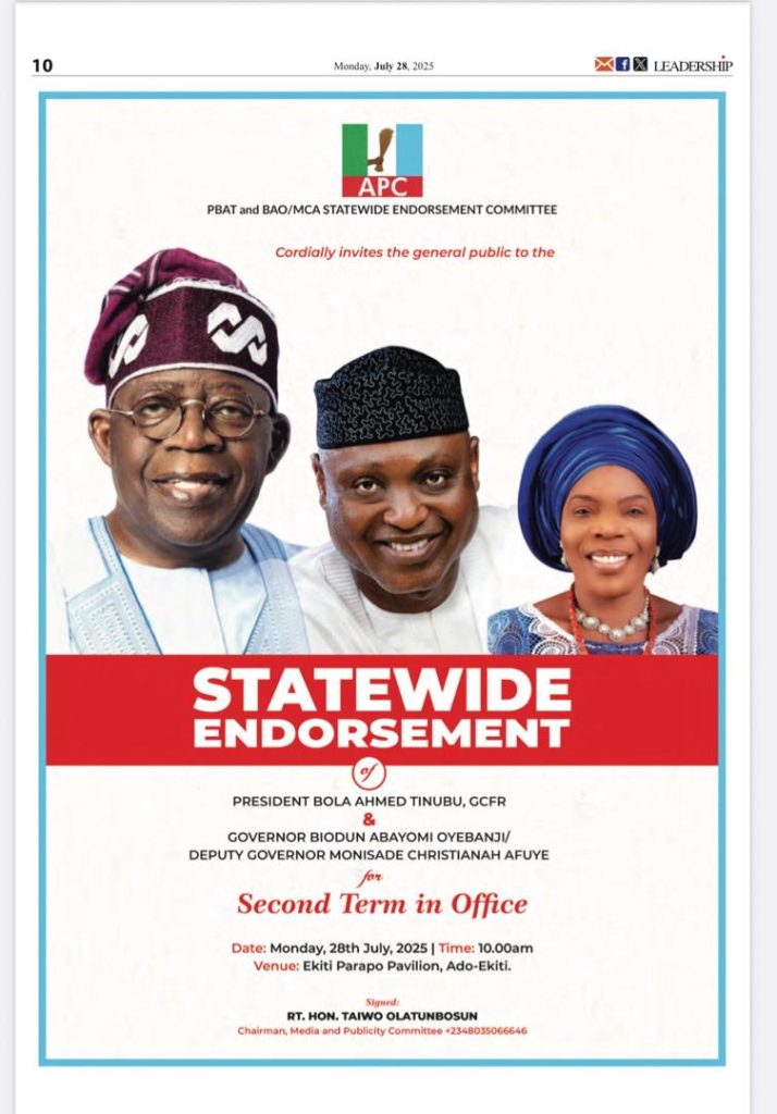 He further urged party members and supporters to conduct themselves peacefully and uphold the values of love, tolerance, and commitment to development that the Oyebanji-led administration promotes across Ekiti State.